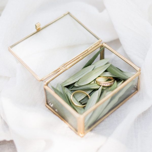 Boîte pour alliances rectangulaire en verre et laiton doré
